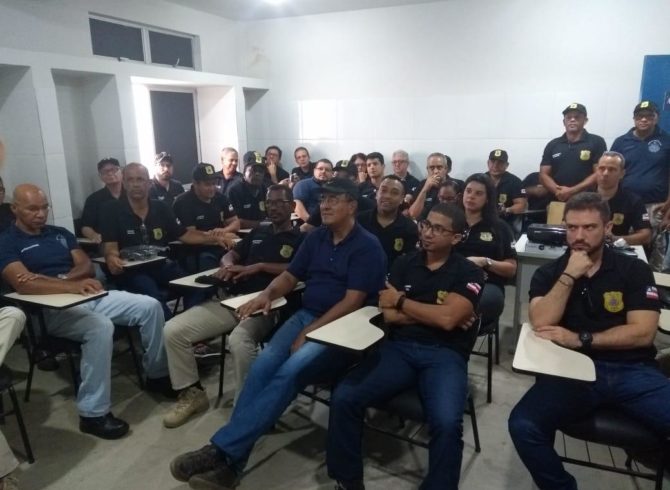 Vários temas forma abordados, repassando aos servidores as orientações e determinações superiores, bem como aprimoramento das investigações e melhoria do atendimento ao público. Dr. Roberto Júnior apresentou ainda a nova identidade visual da Polícia Civil da Bahia, com novo brasão, novos distintivos, novos uniformes já disponibilizados no dia hoje aos Policiais Civis.