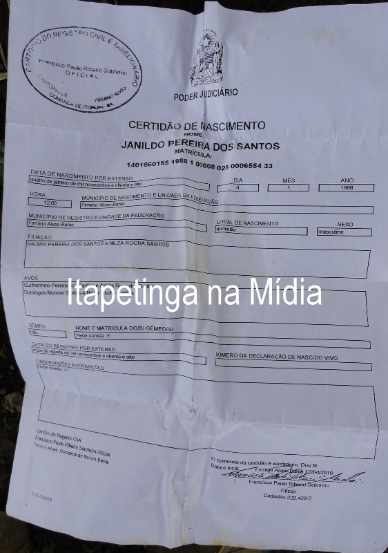 Foragido desde o dia 31 de janeiro deste ano, quando assassinou com requintes de crueldade a sua companheira Gesonide Gonçalves Bonfim, de 39 anos de idade, a golpes de faca, Janildo Pereira dos Santos foi encontrado enforcado na manhã desta quarta-feira, 09, no interior da localidade denominada Fazenda do Reizinho, a dois quilômetros do centro de Itororó-Bahia.