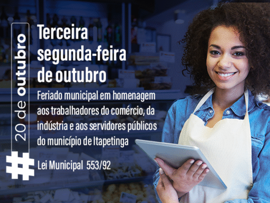 TERCEIRA SEGUNDA-FEIRA DE OUTUBRO É FERIADO MUNICIPAL EM HOMENAGEM AOS TRABALHADORES DO COMÉRCIO, INDÚSTRIA E SERVIDORES PÚBLICOS