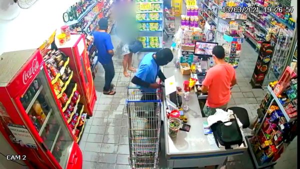 Por volta das 19:30h deste sábado 13, dois elementos encapuzados efetuaram um assalto num mercadinho localizado na rua Potiraguá, Bairro Camacan. Imagens do circuito de segurança do estabelecimento capturou toda cena do crime.