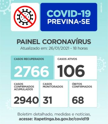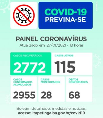 PAINEL CORONAVÍRUS ITAPETINGA: 26 NOVOS CASOS DE CONTAMINAÇÃO E 02 ÓBITOS NAS ÚLTIMAS 24 HORAS…