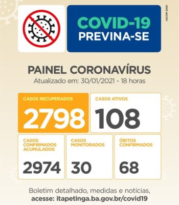 PAINEL CORONAVÍRUS ITAPETINGA: 16 CASOS DE PESSOAS CONTAMINADAS E 02 DE RECUPERADOS DA COVID FORAM NOTIFICADOS NAS ÚLTIMAS 24 HORAS…