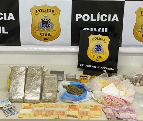 Na tarde de hoje (03/12) Policiais Civis de Itapetinga, após investigação, prenderam em flagrante o indivíduo J.O.S.N., 22 anos, de posse mais de meio quilo de Cocaína e aproximadamente 2,5 kg de maconha, além de duas balanças de precisão e a quantia de R$ 418,00.