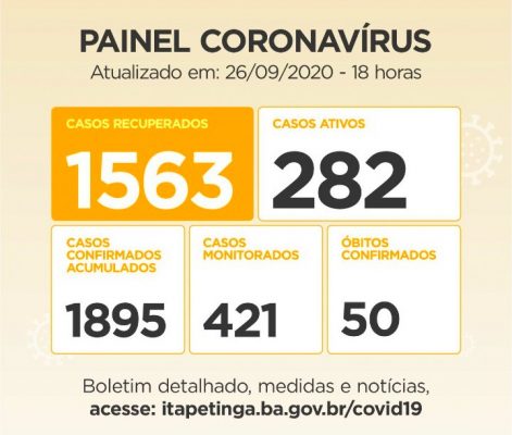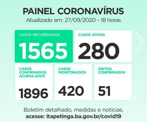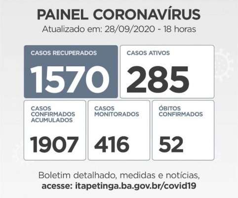 ITAPETINGA PAINEL CORONAVÍRUS: O MUNICÍPIO CHEGOU A 51 MORTES EM DECORRÊNCIA DA COVID-19, 1.896 CASOS CONFIRMADOS E 1.565 PESSOAS RECUPERADAS DA DOENÇA…