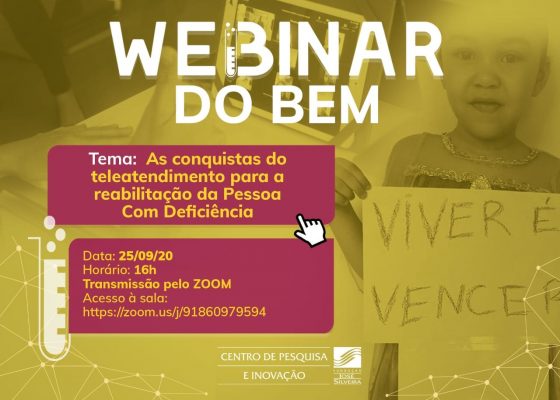 As conquistas do teleatendimento para a reabilitação da pessoa com deficiência são o tema do webinar (videoconferência) a ser realizado pela Fundação José Silveira (FJS), por meio do seu Centro de Pesquisa e Inovação, nessa sexta-feira (25), às 16h.