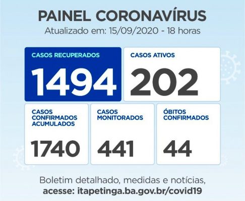 PAINEL CORONAVÍRUS: ITAPETINGA JÁ TEM 1.500 PESSOAS RECUPERADAS DA DOENÇA, CERCA DE 85% DOS CASOS ACUMULADOS…