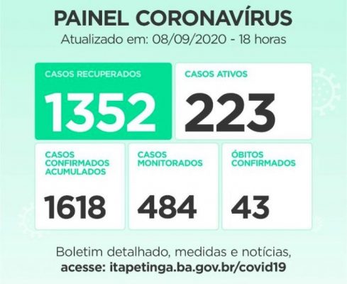 ITAPETINGA: RESUMO DA SEMANA DO PAINEL CORONAVÍRUS / EM SEIS DIAS TIVEMOS 131 PESSOAS RECUPERADAS, 106 PESSOAS CONTAMINADAS E 01 ÓBITO…
