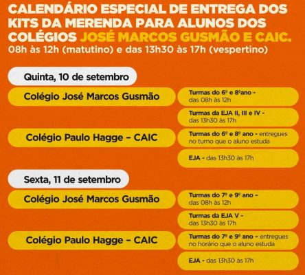 Calendário Especial de Entrega dos Kits da Merenda para Alunos dos...