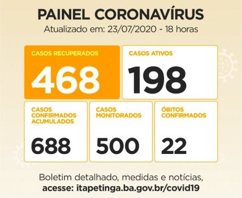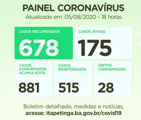 ITAPETINGA TEM 68% DOS CASOS DE COVID-19 RECUPERADOS, SÃO 468 PESSOAS…