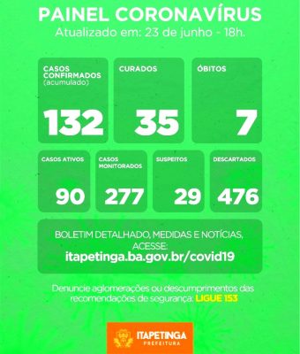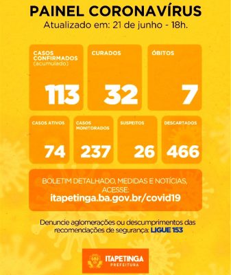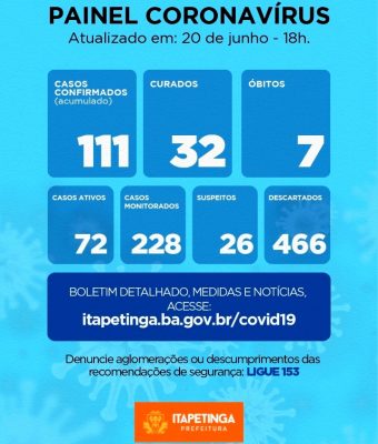 ITAPETINGA: CASOS CONFIRMADOS DE COVID-19 CHEGAM A 111 NESTE SÁBADO, 20 DE JUNHO…