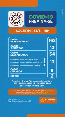 BOLETIM COVID-19 ITAPETINGA DO DIA 31 DE MAIO DE 2020…