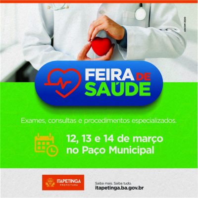 ITAPETINGA: PREFEITURA REALIZARÁ FEIRA DE SAÚDE NOS DIAS 12, 13 E 14 DE MARÇO NO PAÇO MUNICIPAL…