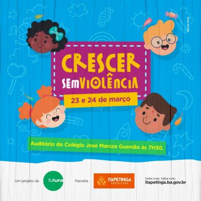Nos dias 23 e 24 de março, chega a Itapetinga o projeto Crescer sem Violência. A iniciativa do Canal Futura, em parceria com a prefeitura municipal, visa mobilizar pessoas para prevenir e enfrentar as diferentes formas de violência contra crianças e adolescentes.