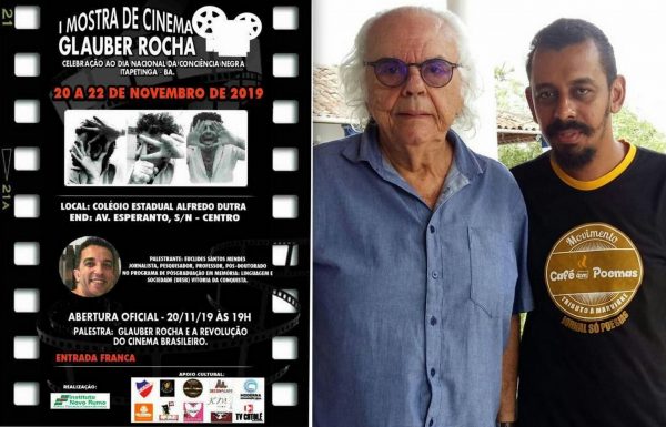 O Instituto Novo Rumo – Cultura, Educação e Desenvolvimento Sob a Presidência do Artista Valdeique Oliveira, no período de 20 a 22 de Novembro do ano em curso em Itapetinga, realiza o evento da “Primeira Mostra de Cinema Glauber Rocha” que celebra em sua primeira edição dos 80 anos do cineasta Glauber Rocha.