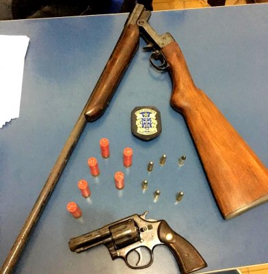 Durante o cumprimento, na tarde desta terça-feira, 25, foi encontrado no interior do veículo do autor um revólver Taurus, calibre .38, municiado com seis cartuchos intactos e na sua residência uma espingarda marca Bereta, calibre .28 e seis munições intactas.