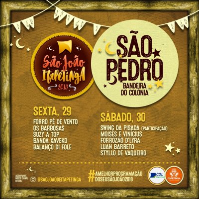 Pra quem já está com saudades do São João de Itapetinga, calma porque ainda tem muito forró. Agora é a vez do distrito de Bandeira do Colônia arrastar o pé. A festa começa na sexta-feira, 29, e termina no sábado, 30.