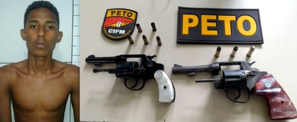 A Guarnição do PETO 8 apreendeu duas armas de fogo em poder dos indivíduos (dois revólveres)...A ocorrência se deu no bairro Hilda Gama...