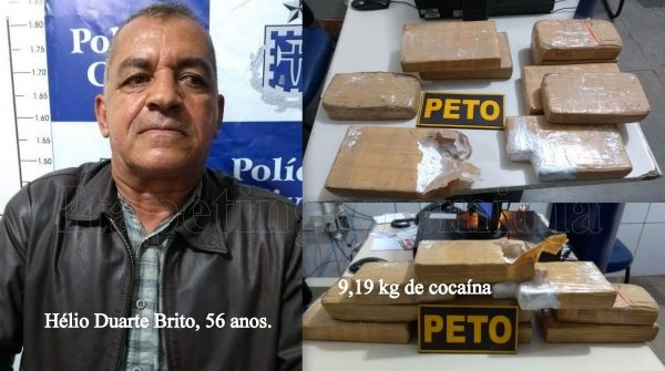 A droga estava em poder de um velho conhecido da polícia, a pessoa de Hélio Duarte Brito, 56 anos, que no mês de abril de 2011, foi preso em flagrante numa fazenda da região, pela Polícia Civil de Itapetinga, com 06 kg e 300 gramas de cocaína, ficando preso na carceragem da 21ª COORPIN...