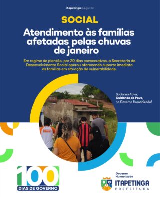 Logo nos primeiros dias do ano, o município enfrentou fortes chuvas que afetaram diversas famílias. A Secretaria de Desenvolvimento Social atuou de forma emergencial, em regime de plantão por 20 dias consecutivos, oferecendo suporte imediato às famílias em situação de vulnerabilidade. O trabalho incluiu visitas técnicas, levantamento de danos, encaminhamentos sociais e articulação com outras secretarias para ações...