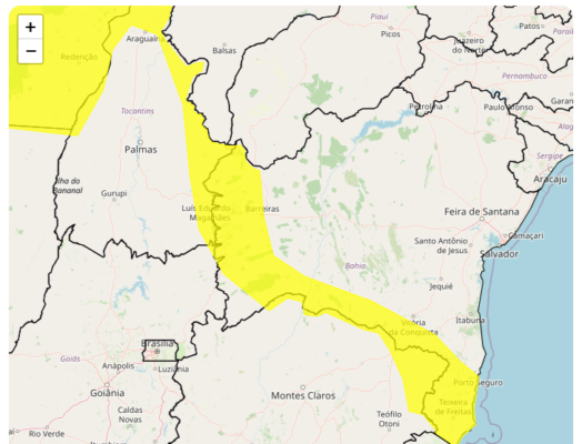 O Instituto Nacional de Meteorologia (Inmet) emitiu um alerta de chuvas intensas para a Bahia, com chance de chuva e ventos intensos. O aviso do nível amarelo é válido para mais 15 estados até esta quinta-feira, 2. O grau de severidade é de perigo potencial.