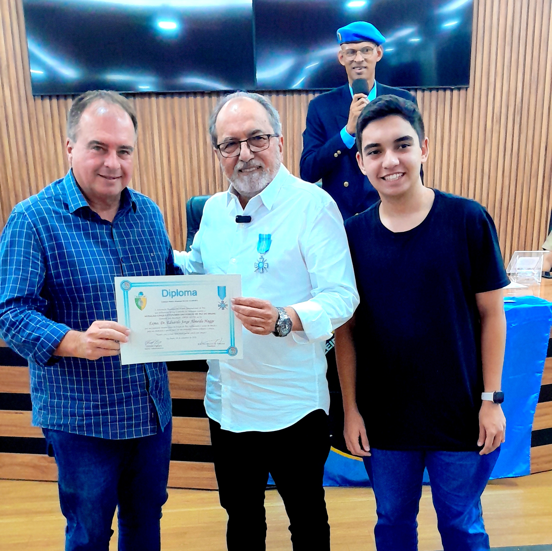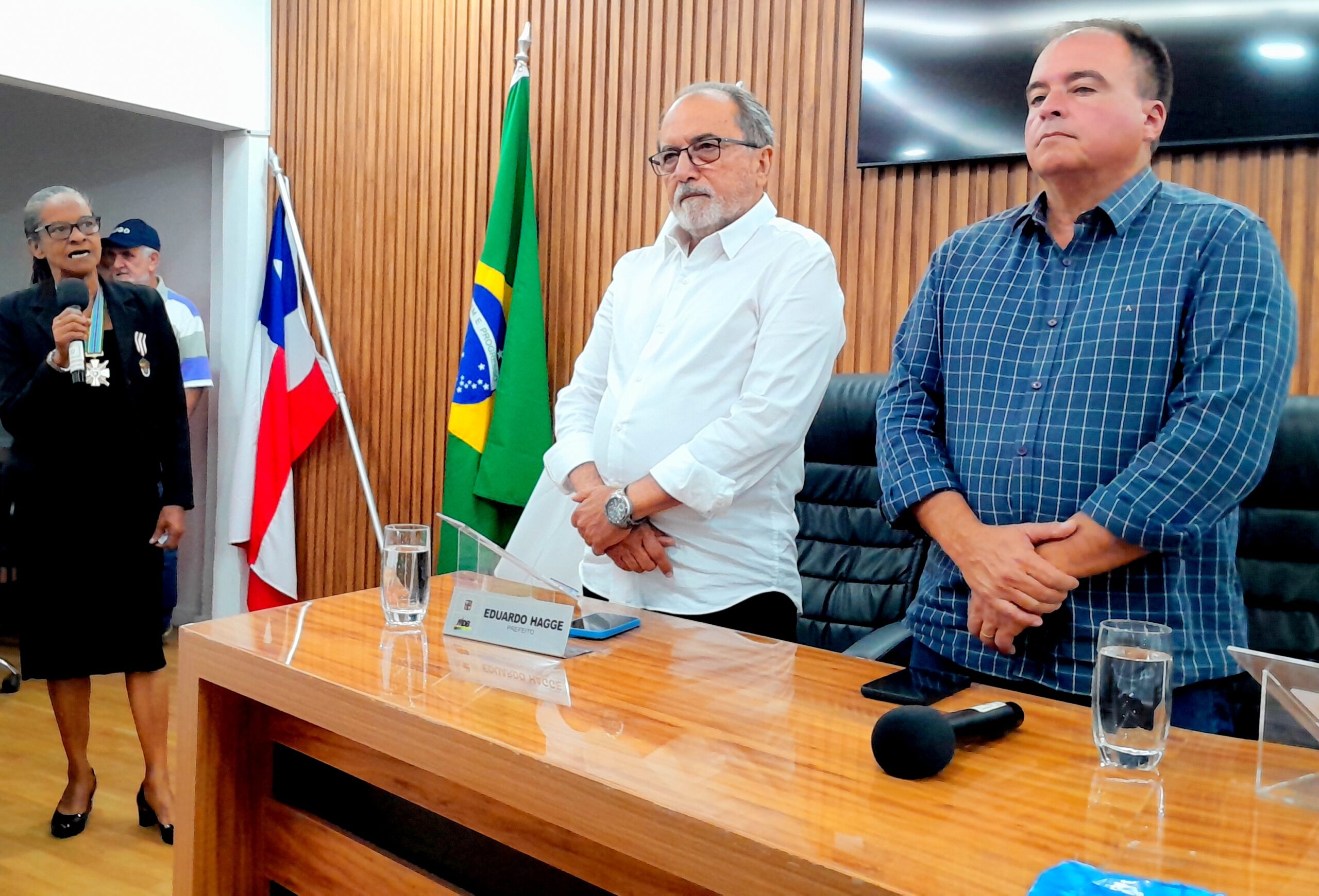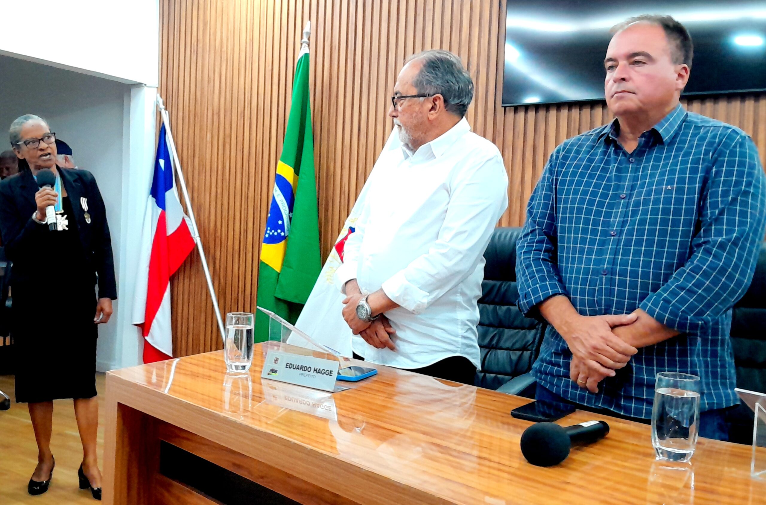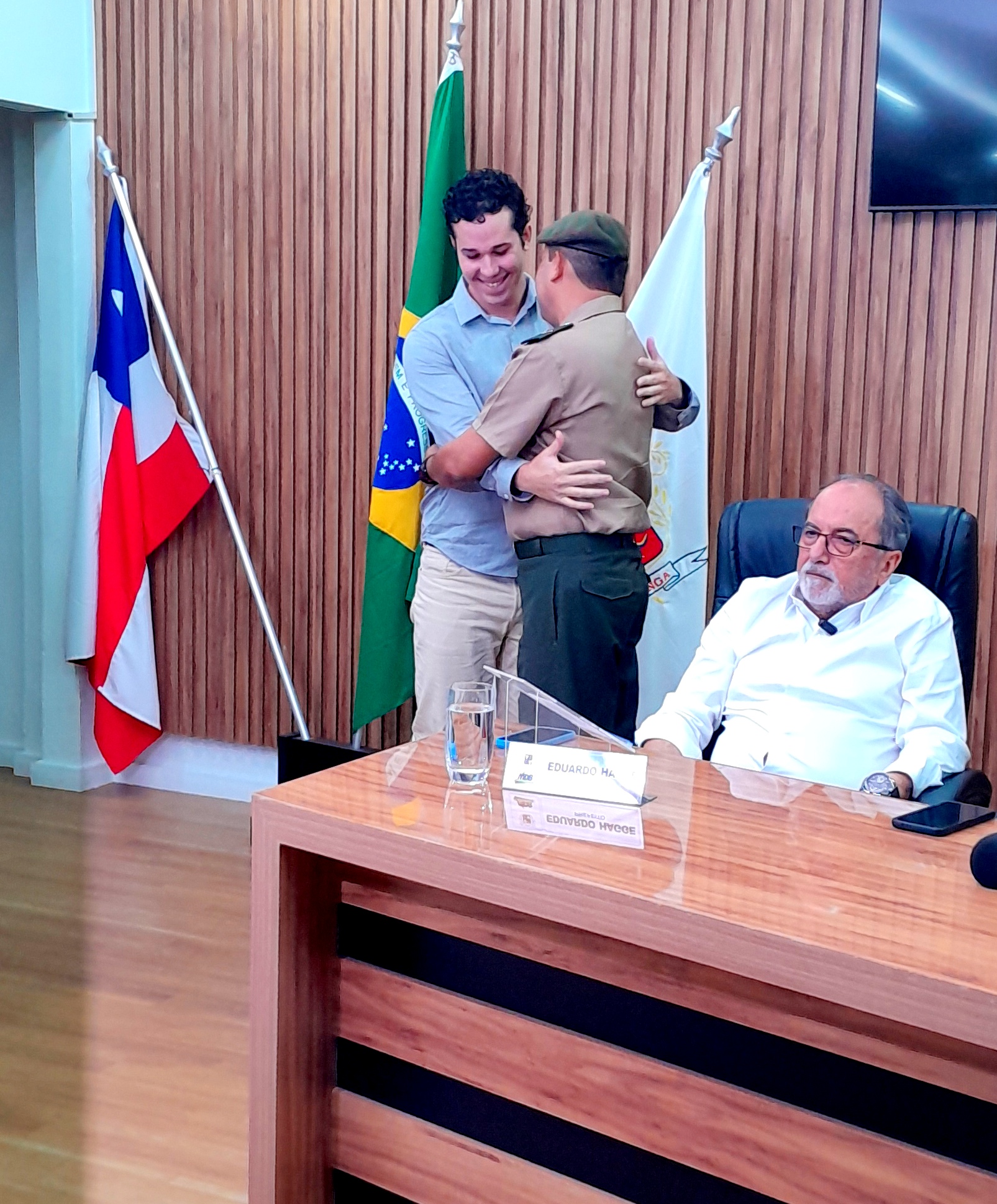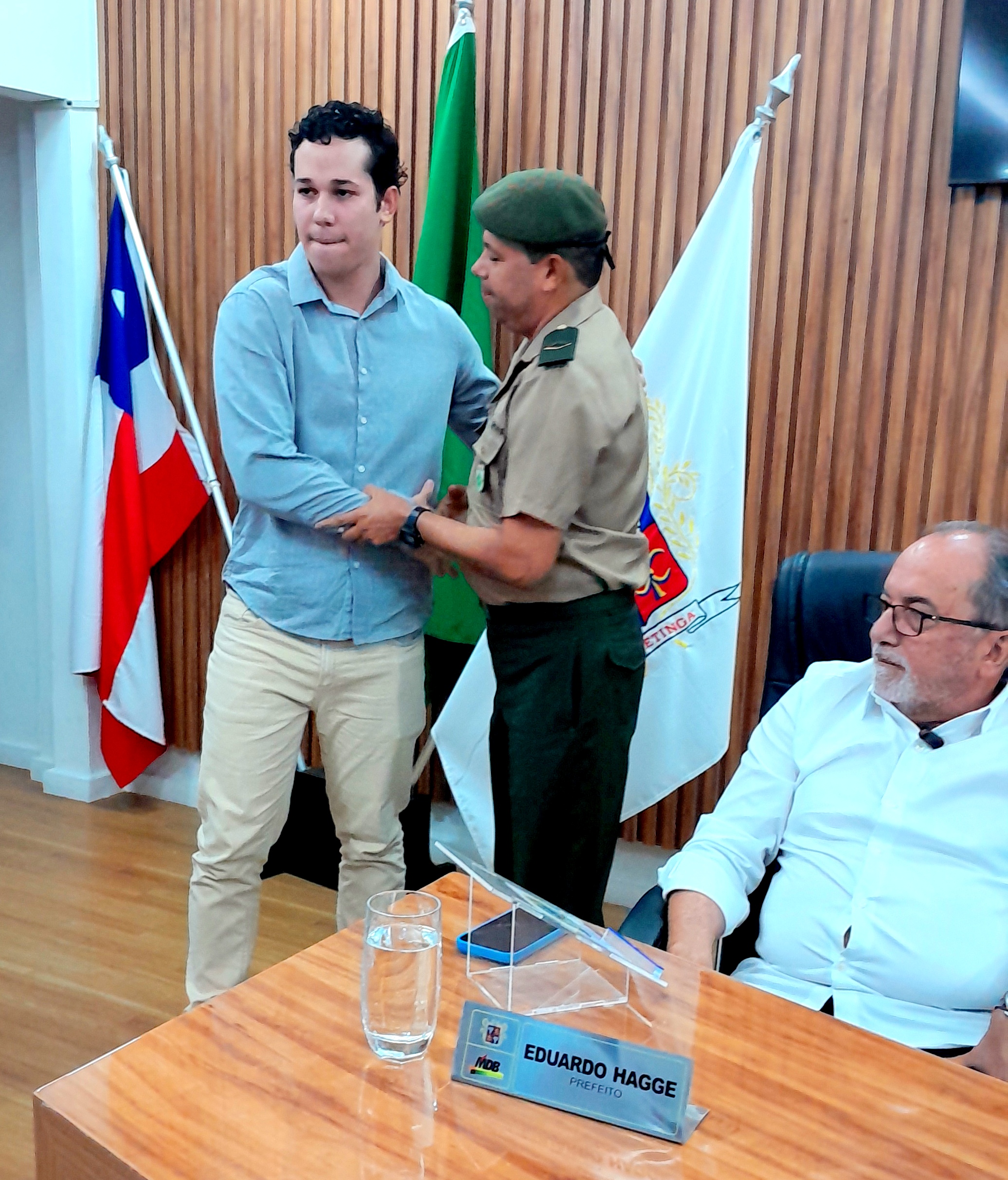 A solenidade que aconteceu no plenário Dr. Ulisses Guimarães, na Câmara de Vereadores, também prestou uma homenagem especial ao prefeito Eduardo Hagge e ao Subtenente Antônio Luiz da Silva Filho – Chefe de Instrução do Tiro de Guerra 06-023 de Itapetinga, pelo reconhecimento da prestação de serviços de excelência à comunidade local.