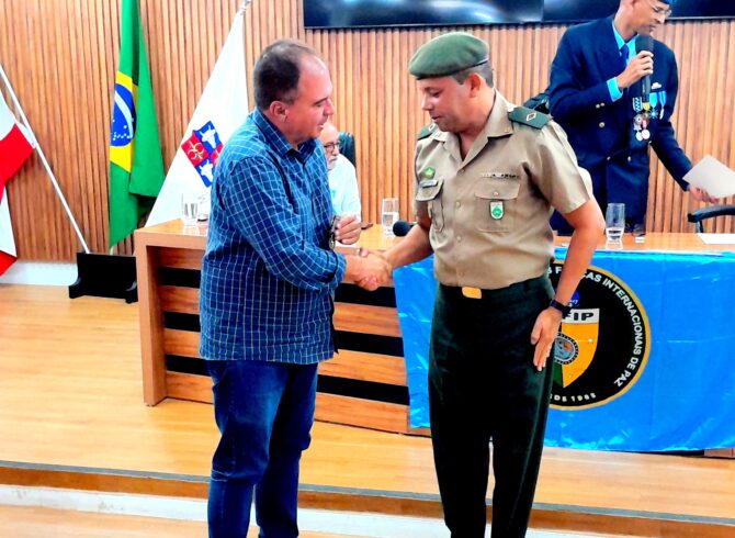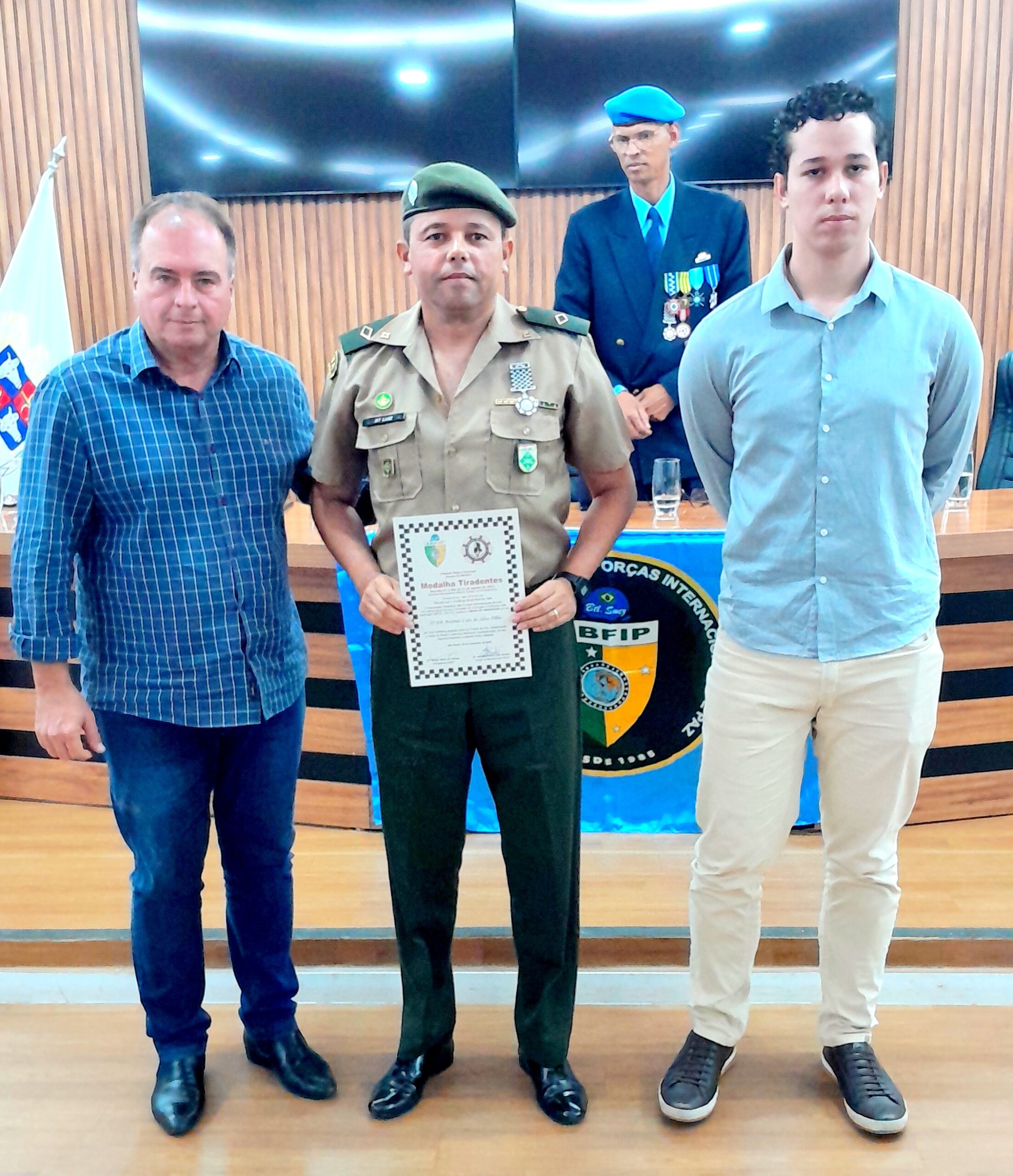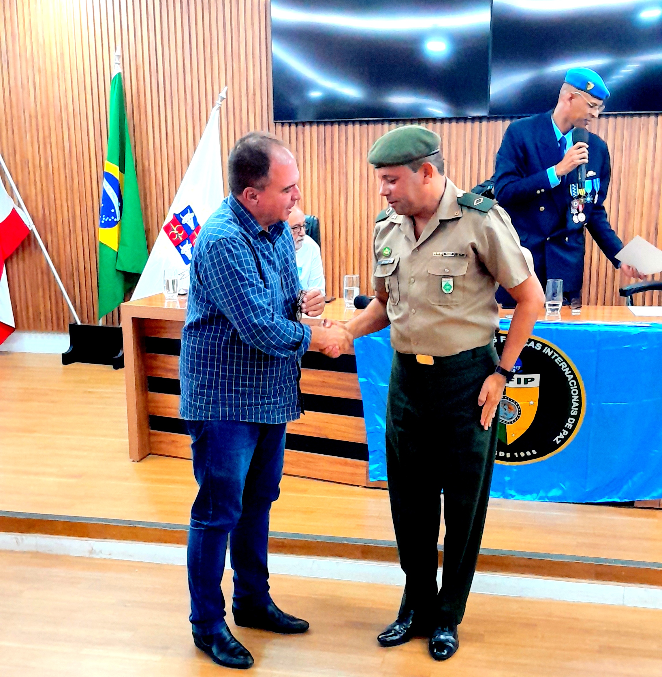 O prefeito Eduardo Hagge e o Chefe de Instrução do Tiro de Guerra – Subtenente Antônio Luiz Silva Filho foram homenageados e condecorados pela diretoria da ABFIP durante ato solene.