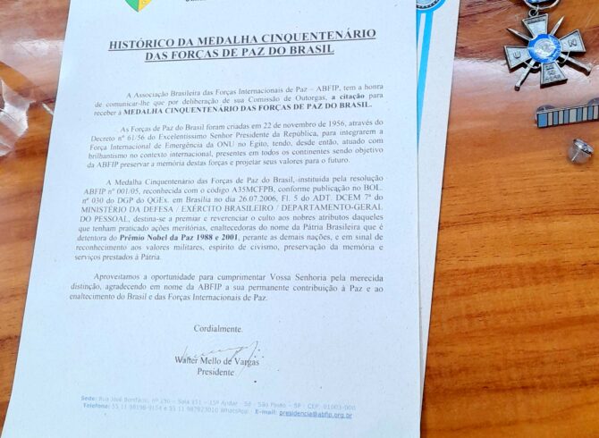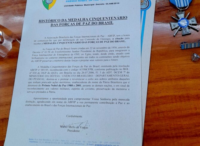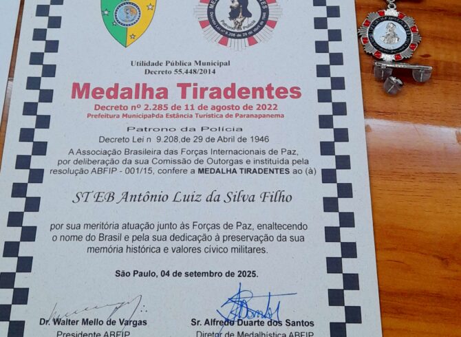 Na noite da última quinta-feira, 04, a Associação Brasileira das Forças Internacionais de Paz da ONU (ABFIP ONU) realizou uma sessão solene de entrega de medalhas e outorgas, reunindo autoridades civis e militares em um evento marcado por emoção e reconhecimento.
