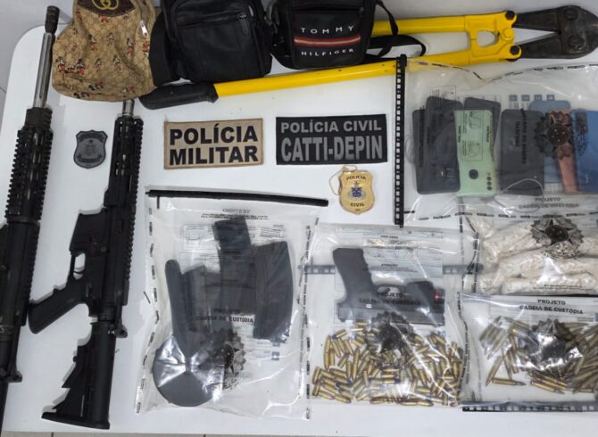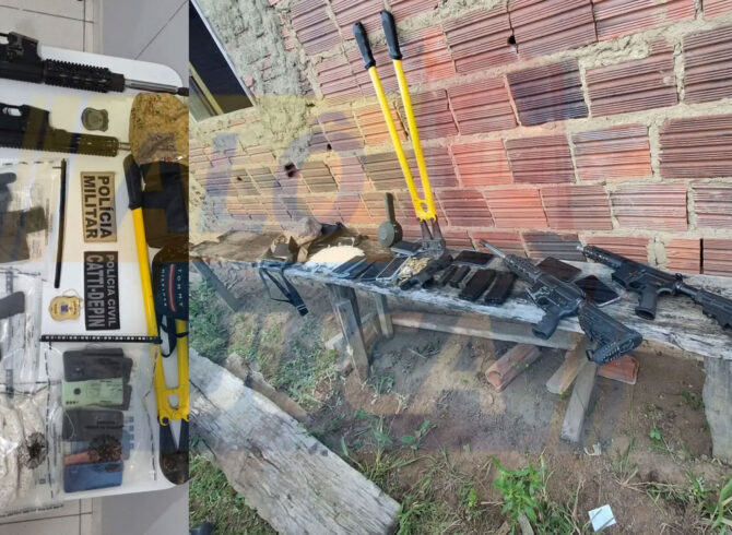 Dentro do imóvel, além das armas de grosso calibre, os agentes encontraram diversas munições, drogas, um alicate amarelo e duas bolsas. As armas são as mesmas utilizadas na tentativa de invasão da cidade entre a noite do dia 7 e a madrugada do dia 8.
