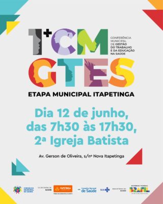 1ª CONFERÊNCIA MUNICIPAL DE GESTÃO DO TRABALHO E DA EDUCAÇÃO NA SAÚDE, DIA 12 DE JUNHO, NA SEGUNDA IGREJA BATISTA DE ITAPETINGA.