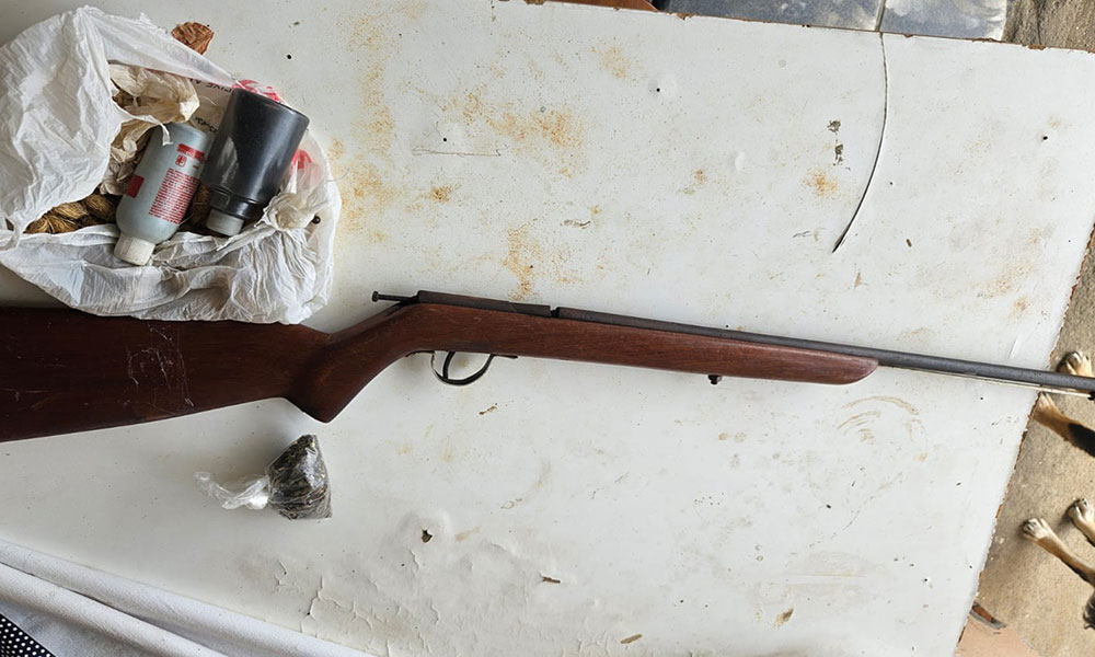 Policiais militares da 8ª CIPM apreenderam uma arma de fogo e droga, na tarde desta quinta-feira, no bairro Nova Macarani, no município de Maracani. Os militares realizavam patrulhamento, quando avistaram um homem em atitude suspeita. Ao realizarem a abordagem, foi encontrado em sua posse, uma espingarda de fabricação artesanal e 50g de maconha.