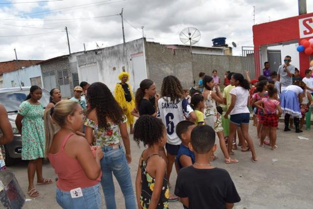 As festividades começaram por volta das 9h da manhã, e a rua rapidamente se encheu de vozes felizes e olhos curiosos. Durante toda a manhã, foram distribuídos cachorro-quente, doces, pipoca, brinquedos e, para a alegria da garotada, houve até sorteios. A sortuda menina Sófia levou para casa uma bicicleta novinha, sorteada ao vivo. As pequenas Maria Ísis e Maria ganharam bonecas, enquanto Davi e Gabriel foram presenteados com bolas. Todas as crianças receberam lembrancinhas, participaram de brincadeiras e até se refrescaram com um divertido banho de mangueira. O evento contou com a sonorização do conceituado mini trio Miau Au Au, que durante toda a programação manteve o volume dentro das normas de trânsito e executou lindas músicas alusivas ao momento.
