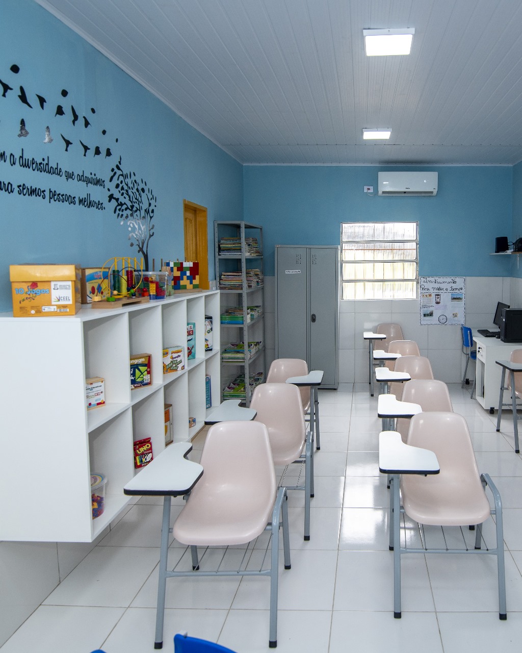 A escola ganhou piso, revestimento e forro novos, pinturas mais coloridas, banheiro com acessibilidade, cozinha ampla, espaço da leitura, além de mobiliário novo e materiais pedagógicos para atender alunos da educação especializada. Além disso, o espaço foi completamente climatizado e teve seu reservatório de água ampliado. Os alunos receberam mais conforto e cuidado.