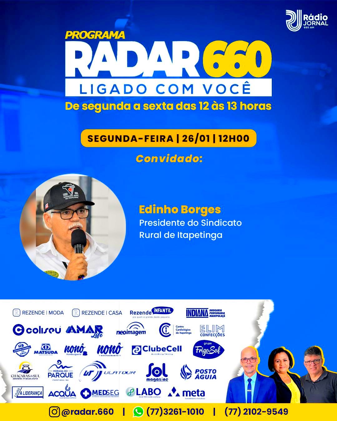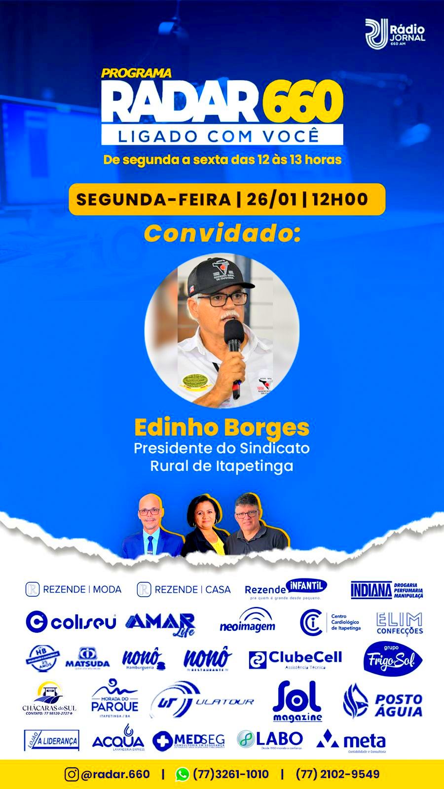 Sizinio Neto e Portelinha, de segunda a sexta-feira, das 12 às 13h. Na oportunidade, ele falou sobre a 54ª Exposição Agropecuária de Itapetinga, que já tem data confirmada e acontecerá de