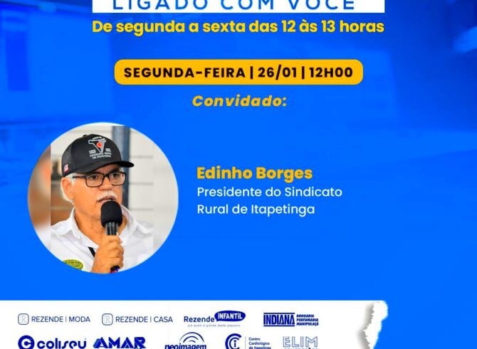 ENTREVISTA DE EDINHO BORGES (PRESIDENTE DO SINDICATO RURAL DE ITAPETINGA SOBRE A 54ª EXPOSIÇÃO AGROPECUÁRIA DE ITAPETINGA: DE 14 A 24 DE MAIO DE 2026.O presidente do Sindicato Rural de Itapetinga, Edinho Borges, participou do programa Radar 660, da Rádio Jornal AM, nesta segunda-feira, 26, atendendo ao convite da produção. O programa é apresentado por