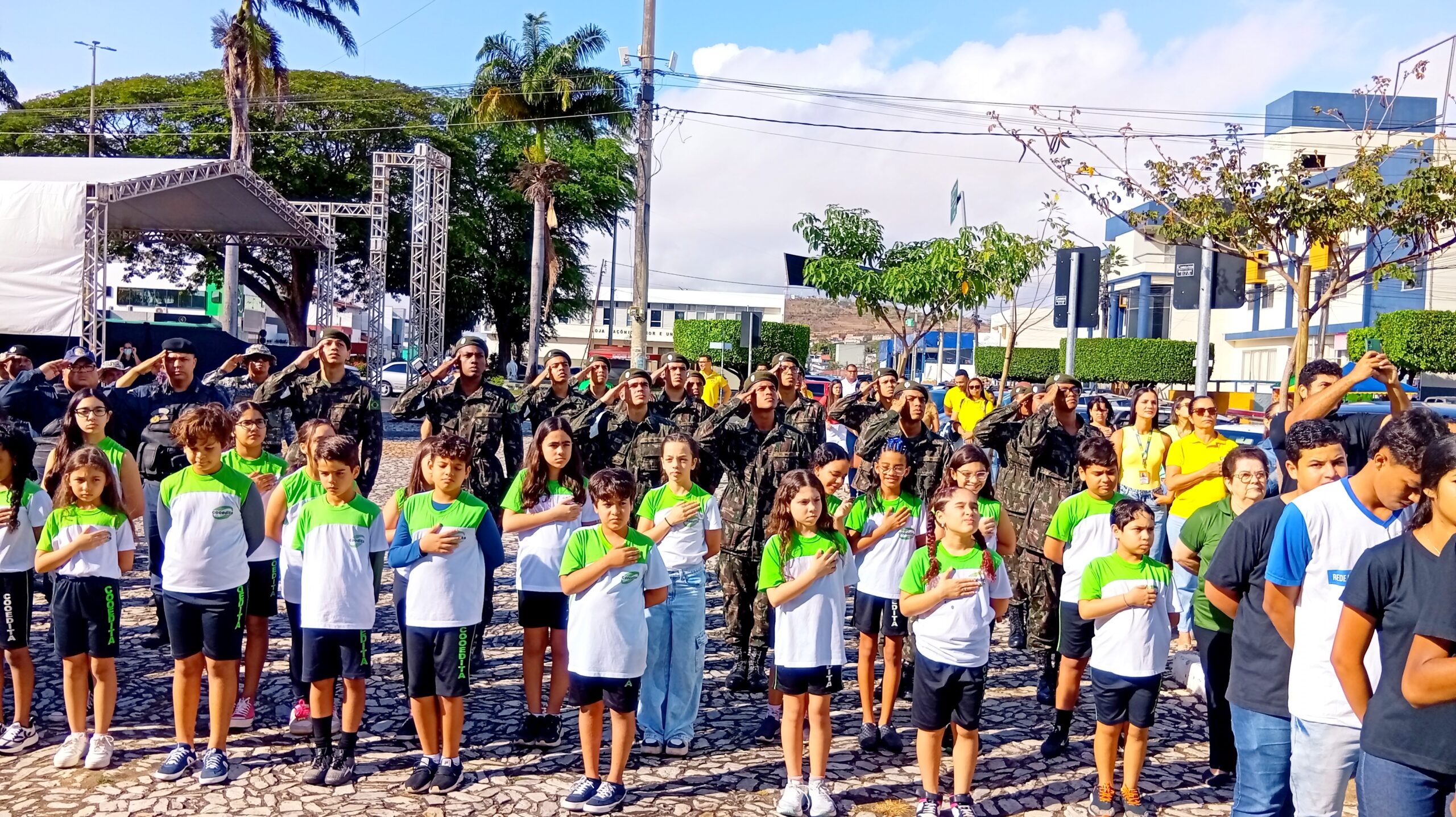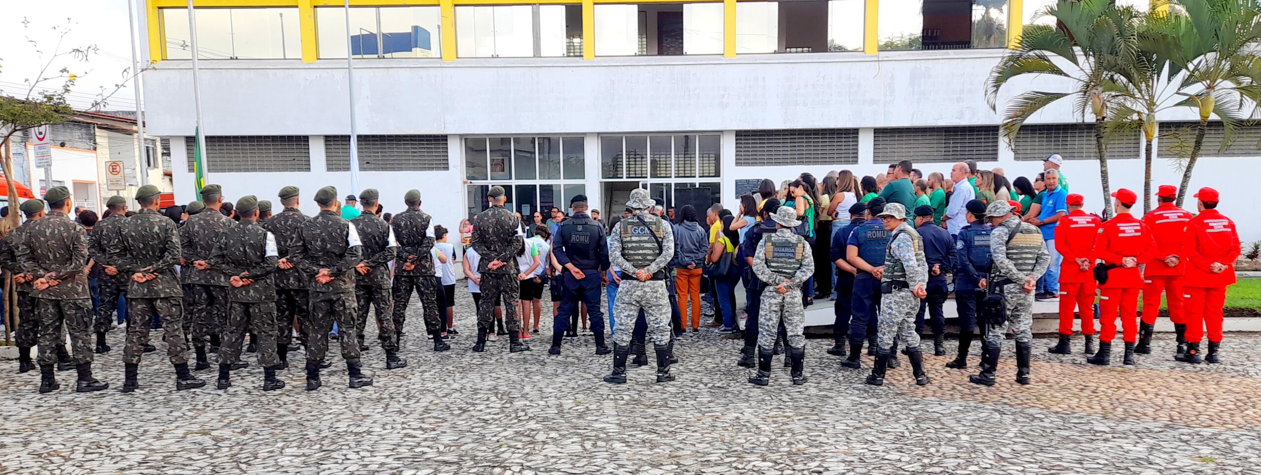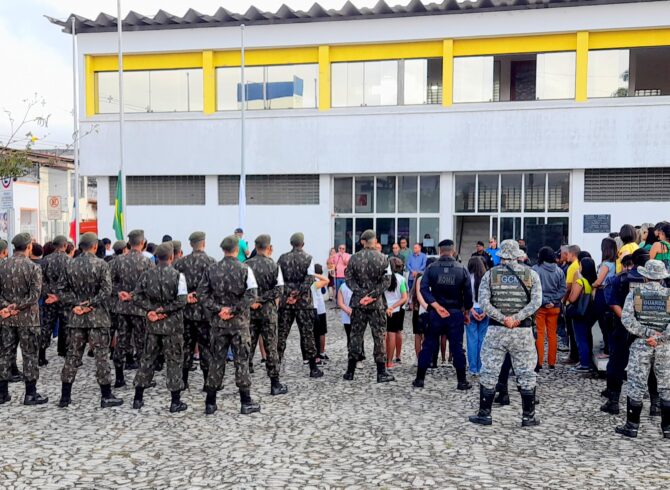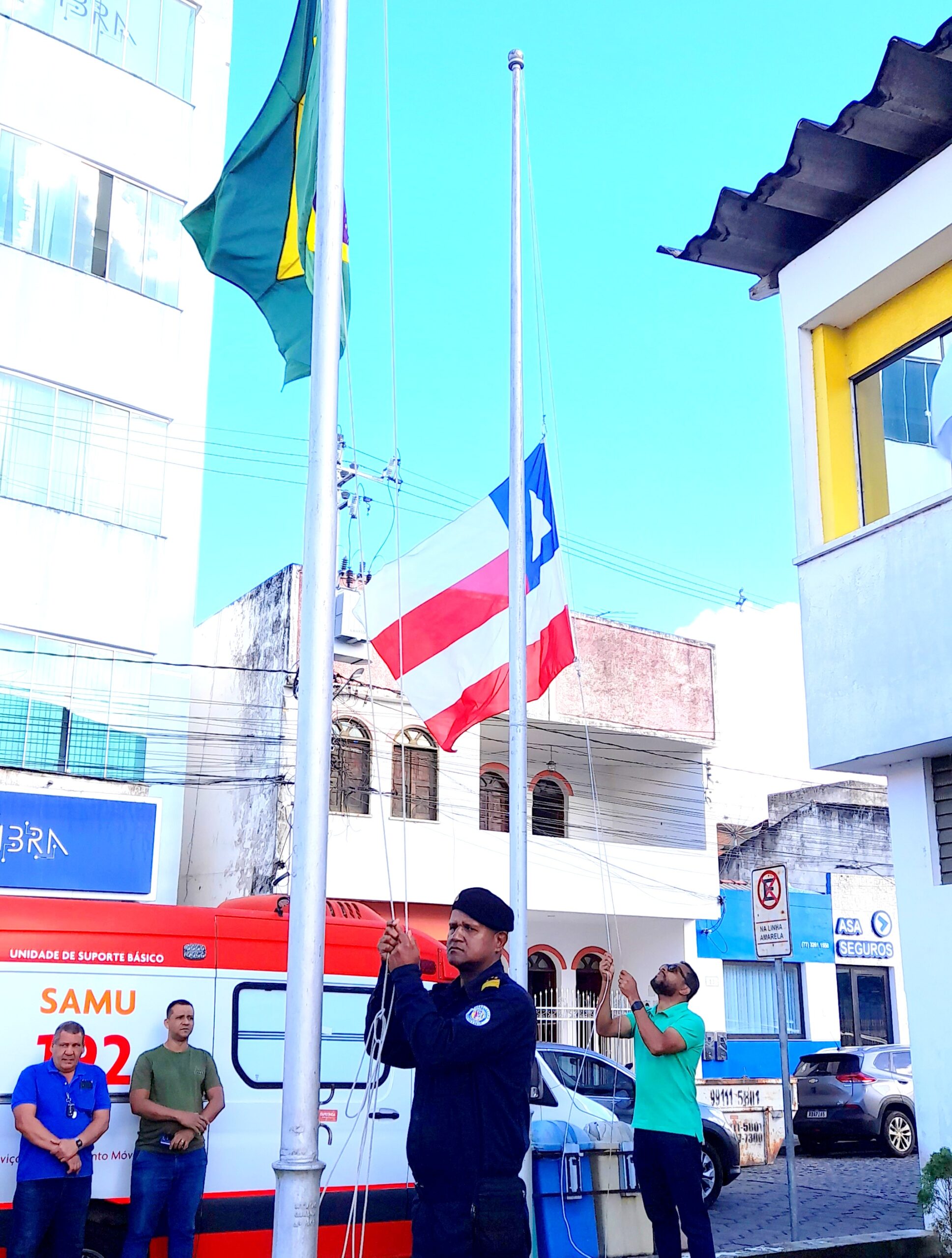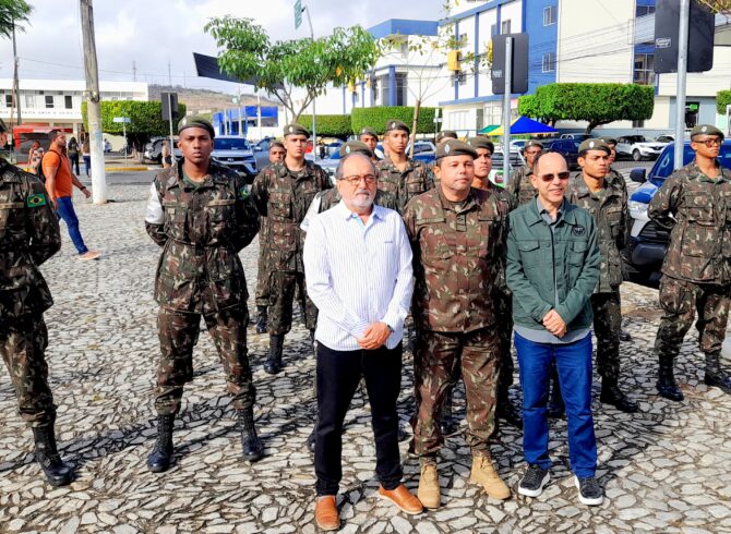 Na manhã desta terça-feira (02), foi realizado o segundo dia de solenidade de hasteamento das bandeiras em frente à Prefeitura de Itapetinga. O ato cívico contou com a participação dos atiradores do Tiro de Guerra, servidores municipais, equipe da Secretaria de Saúde, incluindo o pessoal do SAMU, a GCM (Guarda Civil Municipal e o GEPA – Grupamento Especial de Proteção Ambiental), bombeiros civis da equipe Sussuarana, além da presença do Subtenente Luiz (Chefe de Instrução do Tiro de Guerra 06-023).
