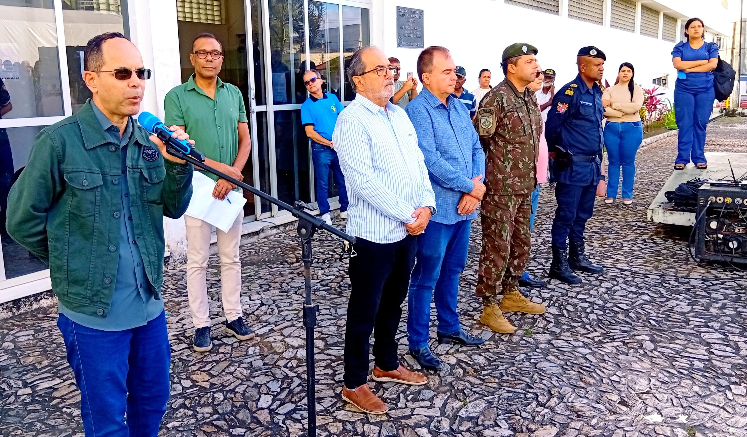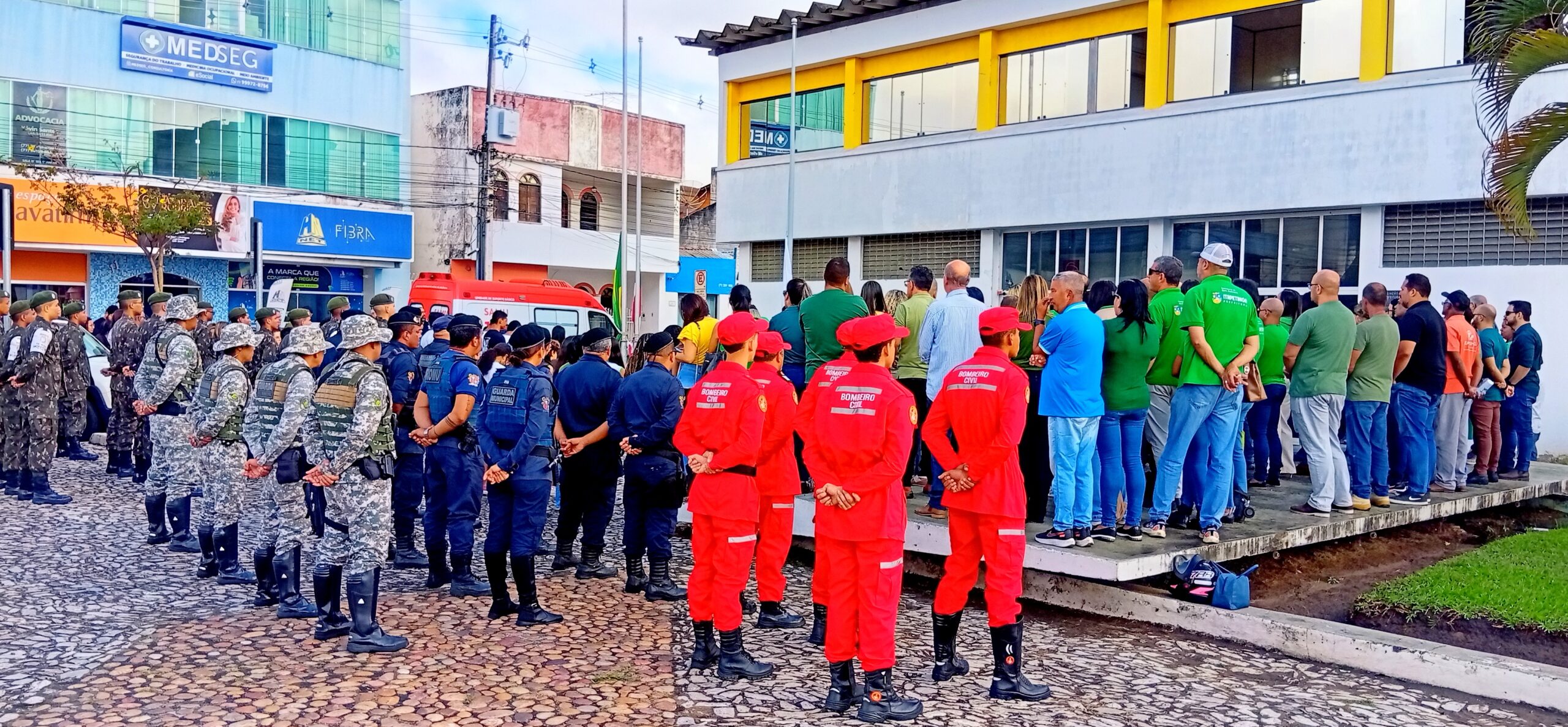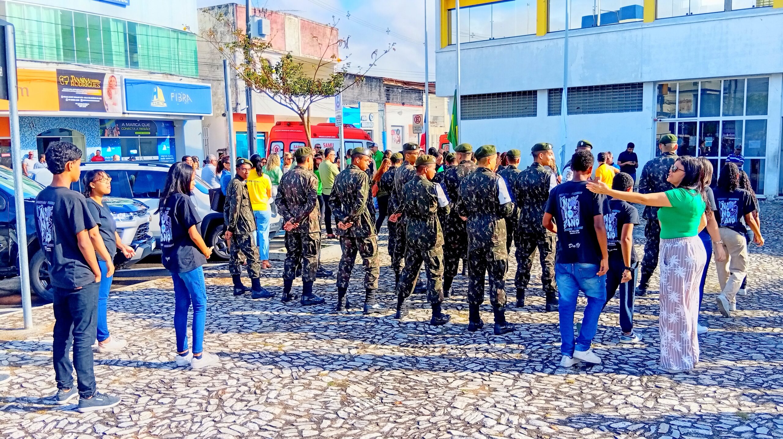 Na manhã desta terça-feira (02), foi realizado o segundo dia de solenidade de hasteamento das bandeiras em frente à Prefeitura de Itapetinga. O ato cívico contou com a participação dos atiradores do Tiro de Guerra, servidores municipais, equipe da Secretaria de Saúde, incluindo o pessoal do SAMU, a GCM (Guarda Civil Municipal e o GEPA – Grupamento Especial de Proteção Ambiental), bombeiros civis da equipe Sussuarana, além da presença do Subtenente Luiz (Chefe de Instrução do Tiro de Guerra 06-023).